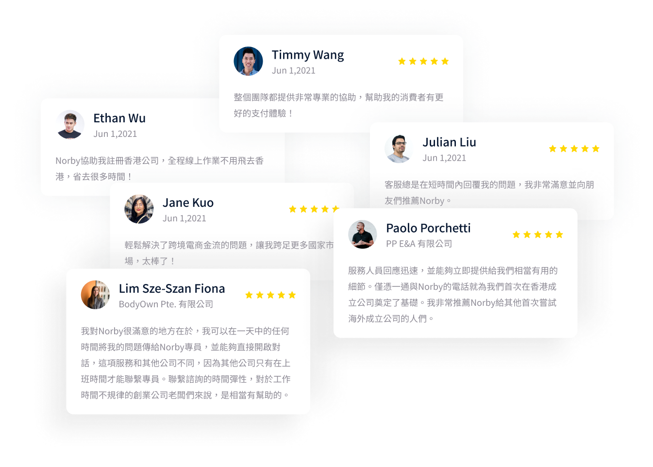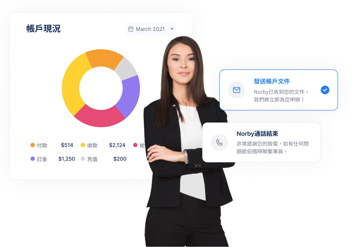 公司註冊只是第一步。 為了節省您的時間。 在我們註冊您的公司後,我們將密切關注政府對文件的要求通知,並提醒您即將到來的截止日期。您的所有文件都將永久儲存在一個方便的平台上,並且免費、易於搜尋和分享。發送到您註冊地址的任何信件,我們將掃描並發送給您。使用 Norby,您可以建立業務並一勞永逸地提交帳務報告。